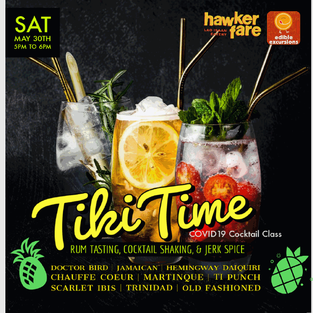 Sign up for our COVID-19 Quarantine Cocktail Classes, in partnership with top mixologist Dolly Valdez Bautista of Hawker Fare in San Francisco. This week: Tiki Time. Cheers!